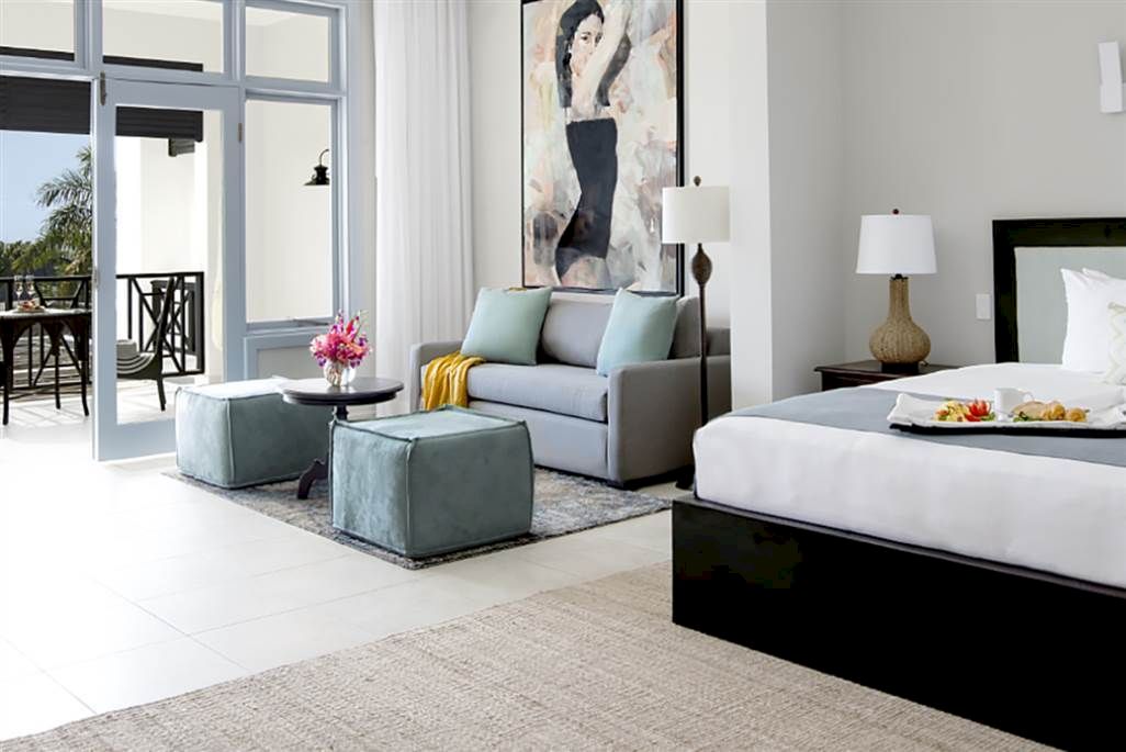Relax in style. Looking for a little more room to put your feet up? Our Deluxe Junior Suites are a perfect choice. With a 600 Sq. Ft. open-plan layout that incorporates a spacious separate seating area (sofa, coffee table and ottomans) for maximum comfort, you’ll be able to enjoy Negril’s beautiful sunsets from the hammock on the balcony, unwind with a book on the plush sofa or simply watch a movie on your flat Screen TV from the comfort of your king size bed. Large en-suite bathrooms feature a double basin marble vanity and a large walk-in shower. Located on the 1st floor.