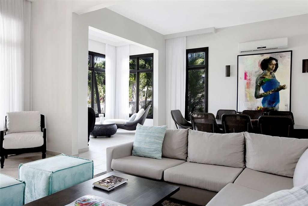 Melding the privacy of an exclusive home away from home with all the amenities of a 5 star boutique hotel, this beautiful villa embodies the very essence of Island living at its very best. Sleek and contemporary, its open plan living room features a spacious seating/dining area and floor to ceiling windows that open out onto a covered furnished patio– making it ideal for families or friends looking to enjoy quality time together.
